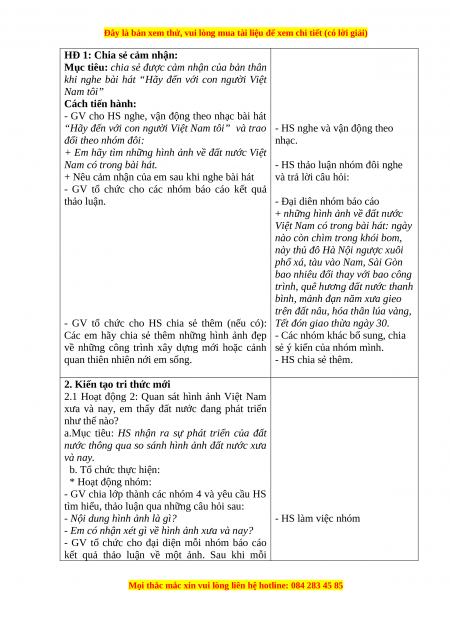 khi nghe bài hát “Hãy đến với con người Việt Nam tôi” Cách tiến hành: