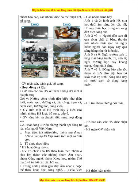 nước thông qua so sánh hình ảnh đất nước xưa và nay. b. Tổ chức thực hiện: * Hoạt động nhóm: