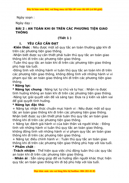BÀI 2 : AN TOÀN KHI ĐI TRÊN CÁC PHƯƠNG TIỆN GIAO THÔNG (Tiết 1 ) I. YÊU CẦU CẦN ĐẠT