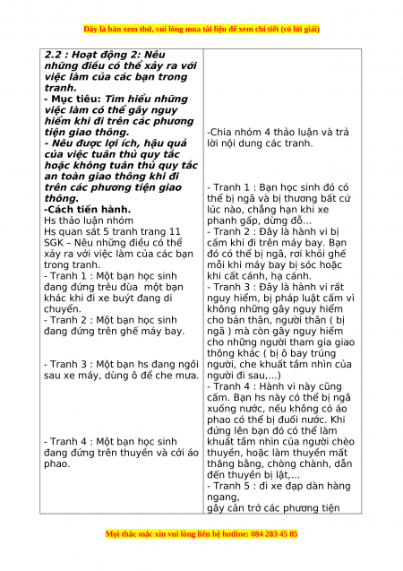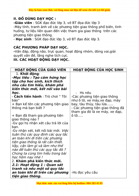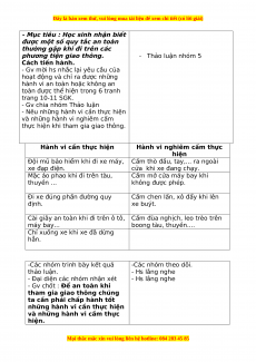 thông khi đi trên các phương tiện giao thông phù hợp với lứa tuổi. * Phẩm chất :