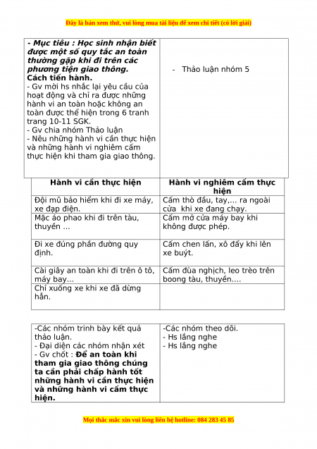 -Tuân thủ quy tắc an toàn khi đi trên các phương tiện giao thông phù hợp lứa tuổi.