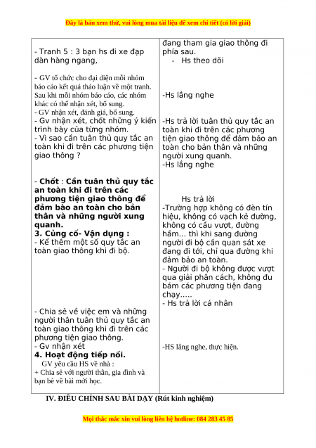 IV. ĐIỀU CHỈNH SAU BÀI DẠY (Rút kinh nghiệm)