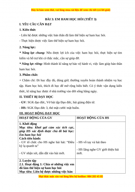 BÀI 3: EM HAM HỌC HỎI (TIẾT 3)