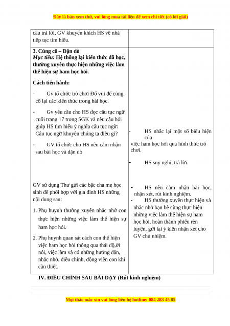 * Năng lực riêng: Hình thành kĩ năng tự bảo vệ hành vi, việc làm giúp bản thân ham học hỏi. 3. Phẩm chất: