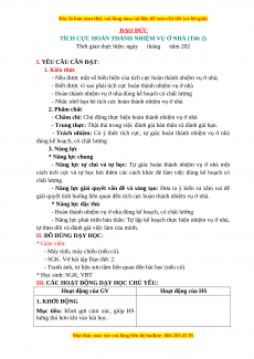 - Nêu được một số biểu hiện của tích cực hoàn thành nhiệm vụ ở nhà;