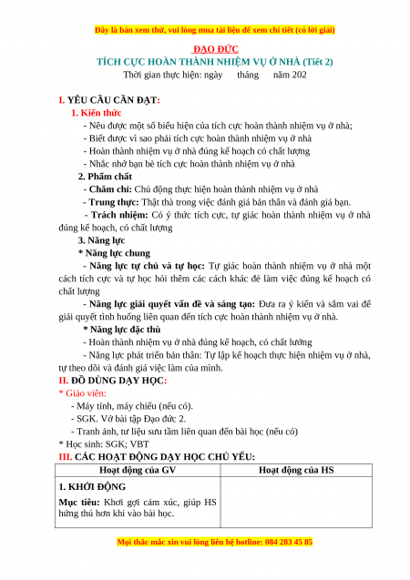- Trách nhiệm: Có ý thức tích cực, tự giác hoàn thành nhiệm vụ ở nhà