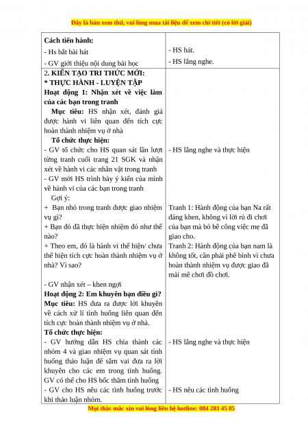 giải quyết tình huống liên quan đến tích cực hoàn thành nhiệm vụ ở nhà. * Năng lực đặc thù