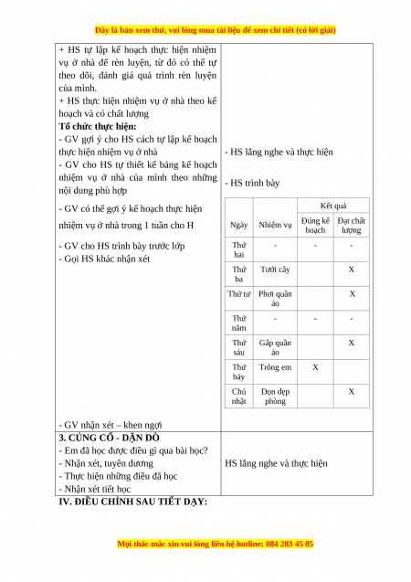 + HS tự lập kế hoạch thực hiện nhiệm