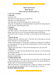 BÀI 6: EM GIỮ LỜI HỨA (TIẾT 3) I. YÊU CẦU CẦN ĐẠT 1. Kiến thức Sau bài học, HS: