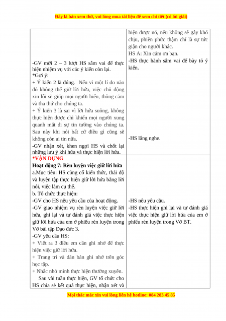 và luyện tập thực hiện giữ lời hứa bằng lời