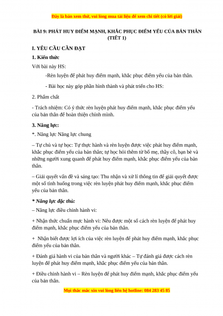 BÀI 9: PHÁT HUY ĐIỂM MẠNH, KHẮC PHỤC ĐIỂM YẾU CỦA BẢN THÂN (TIẾT 1)