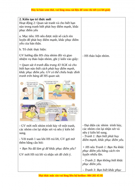 + Nhận biết được lợi ích của việc rèn luyện để phát huy điểm mạnh, khắc phục