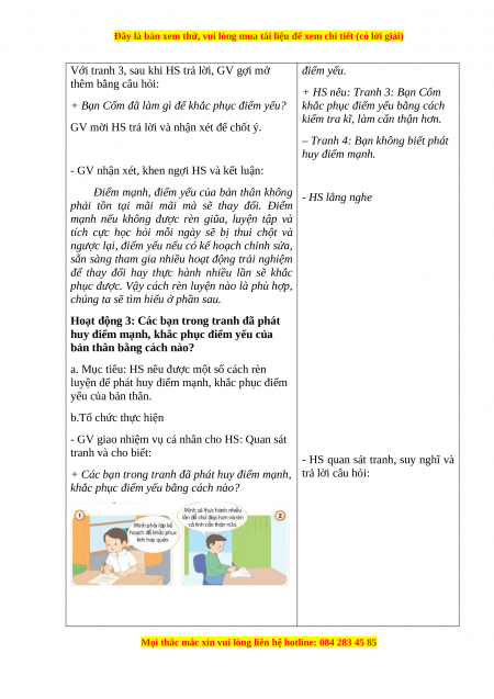 Giáo án Đạo đức 3 Chân trời sáng tạo Bài 9: Pháp huy điểm mạnh, khắc phục điểm yếu của bản thân (Tiết 1)