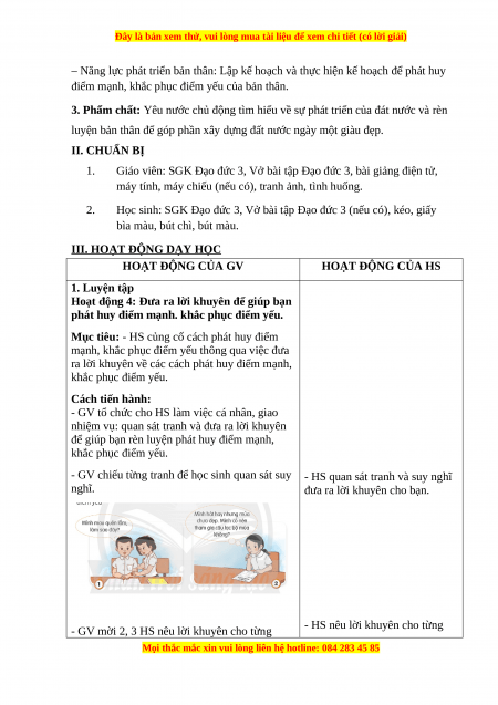Giáo án Đạo đức 3 Chân trời sáng tạo Bài 9: Pháp huy điểm mạnh, khắc phục điểm yếu của bản thân (Tiết 2)