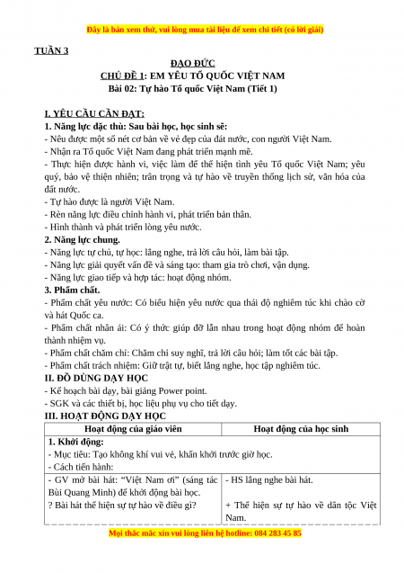 Bài 02: Tự hào Tổ quốc Việt Nam (Tiết 1) I. YÊU CẦU CẦN ĐẠT: