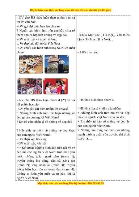 + Nêu được một số nét cơ bản về vẻ đẹp của đất nước, con người Việt Nam.