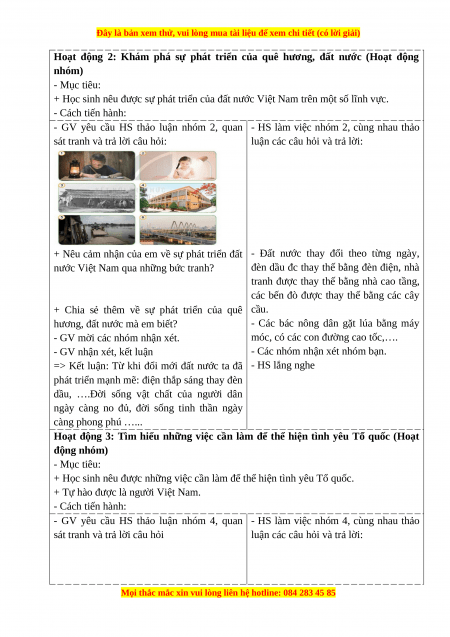 Hoạt động 2: Khám phá sự phát triển của quê hương, đất nước (Hoạt động