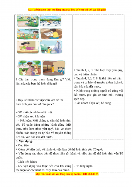 + Học sinh nêu được những việc cần làm để thể hiện tình yêu Tổ quốc.
