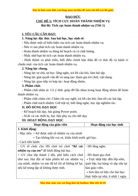 Bài 06: Tích cực hoàn thành nhiệm vụ (Tiết 1) I. YÊU CẦU CẦN ĐẠT: