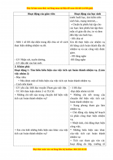 + Nêu được một số biểu hiện của việc tích cực hoàn thành nhiệm vụ. - Cách tiến hành: