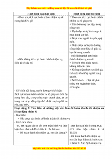 - Phẩm chất nhân ái: Có ý thức giúp đỡ lẫn nhau trong hoạt động nhóm để hoàn thành nhiệm vụ.