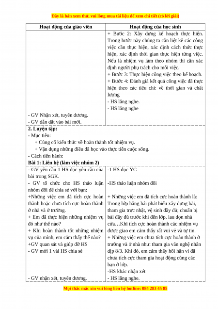 Bài 2: Xác định một nhiệm vụ và xây dựng kế hoạch thực hiện nhiệm vụ (làm