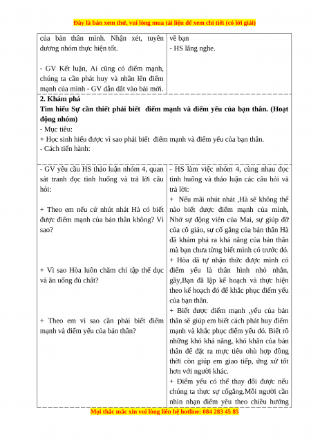 + Học sinh hiểu được vì sao phải biết điểm mạnh và điểm yếu của bạn thân.
