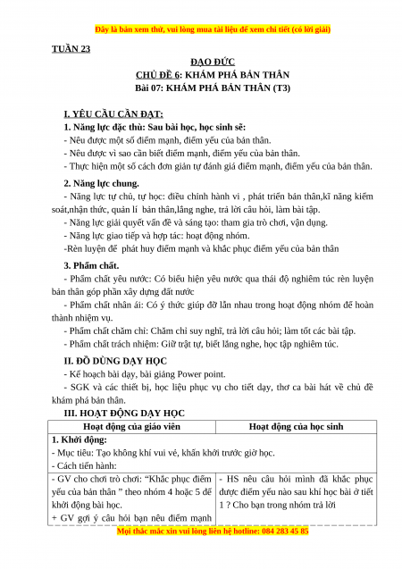 Bài 07: KHÁM PHÁ BẢN THÂN (T3) I. YÊU CẦU CẦN ĐẠT:
