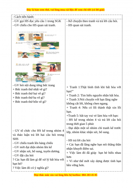 Giáo án Đạo đức 3 Kết nối tri thức Bài 08: Xử lý bất hòa với bạn bè (Tiết 2)