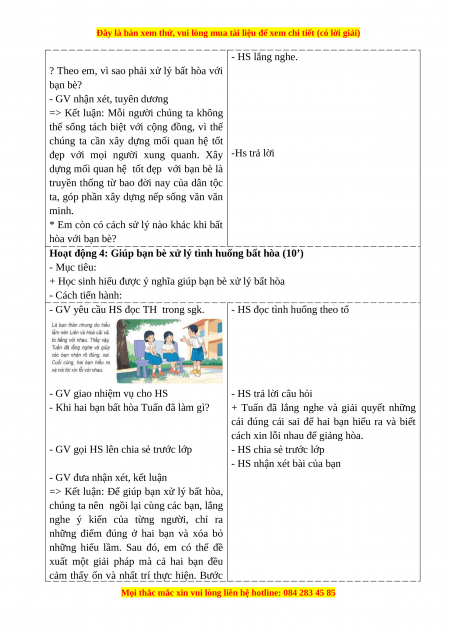 - Nhận biết được lợi ích của việc xử lý bất hòa với bạn bè