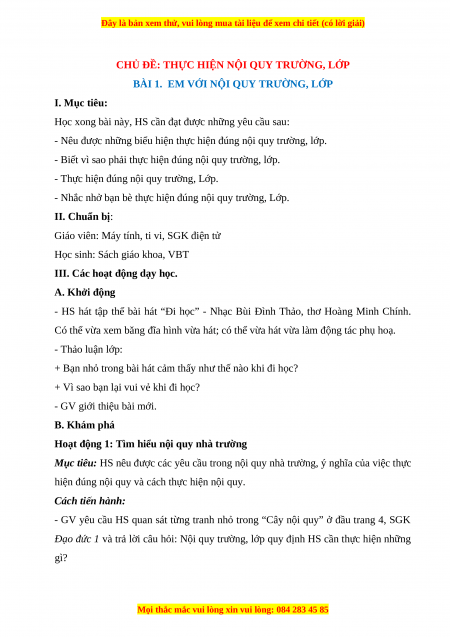 - BÀI 1. EM VỚI NỘI QUY TRƯỜNG, LỚP