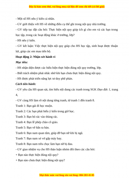 Đạo đức 1 và trả lời câu hỏi: Nội quy trường, lớp quy định HS cần thực hiện những gì?