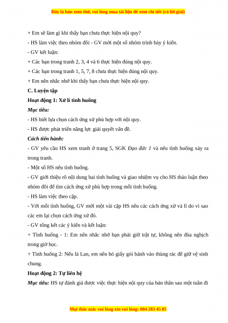 - Nhắc nhở bạn bè thực hiện đúng nội quy trường, Lớp. II. Chuẩn bị: