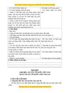 ệ ình yêu thiên nhiên, đ t ấ nư c. ớ + V n d ậ ng vào ụ th c t ự i n đ ễ t ể h c hi ự n t ệ t ố l chào c ễ và ờ hát Qu c ố ca. - Cách ti n ế hành: - GV tổ ch c ứ v n ậ d ng ụ b ng ằ hình th c