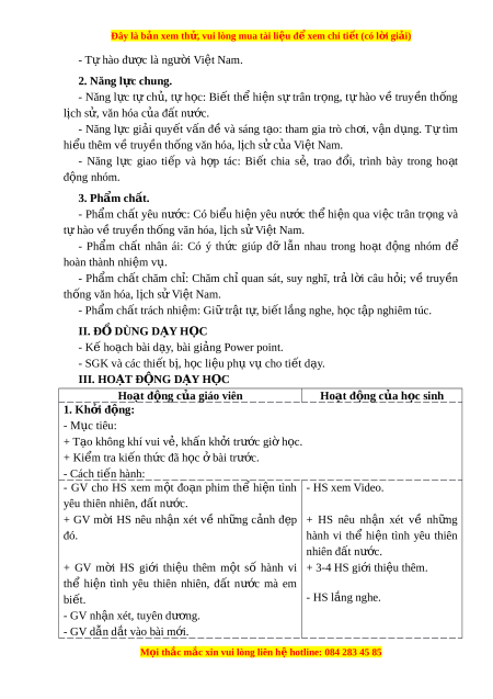ặ hù: Sau bài h c, h ọ c ọ sinh s : ẽ - Th c ự hi n ệ đư c ợ hành vi, vi c ệ làm thể hi n ệ tình yêu Tổ qu c ố Vi t ệ Nam,