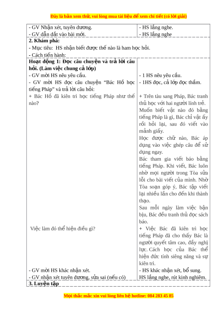 Đây là bản xem th , vu ử i lòng mua tài li u ệ đ xe ể m chi ti t (c ế ó l i ờ gi i ả ) - GV Nh n xét ậ , tuyên dư ng. ơ - HS l ng nghe. ắ - GV d n d ẫ t ắ vào bài m i ớ . - HS l ng nghe ắ 2. Khám phá: - M c ụ tiêu: HS nh n bi ậ t ế đư c ợ th nào l ế à ham h c ọ h i ỏ . - Cách ti n ế hành: Hoạt đ ng ộ 1: Đ c ọ câu chuy n ệ và trả l i ờ câu h i