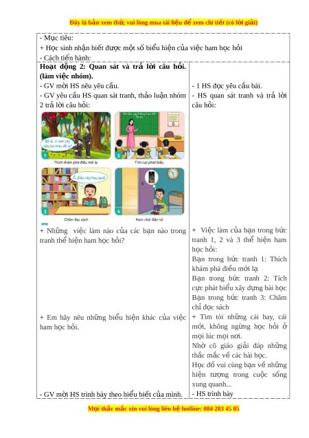 Đây là bản xem th , vu ử i lòng mua tài li u ệ đ xe ể m chi ti t (c ế ó l i ờ gi i ả ) - M c ụ tiêu: + H c ọ sinh nh n ậ bi t ế đư c m ợ t ộ số bi u ể hi n c ệ a ủ vi c ham ệ h c h ọ i ỏ - Cách ti n ế hành: Hoạt đ ng