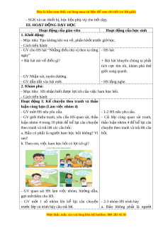 ặ hù: Sau bài h c, h ọ c ọ sinh s : ẽ - Nh n bi ậ t ế được l i ợ ích c a ủ vi c ệ ham h c h ọ i ỏ đ i ố v i ớ l a t ứ u i ổ c a m ủ ình. 2. Năng l c chung. ự - Năng l c t ự ch ự , ủ t h ự c: ọ Nh n ậ bi t ế đư c l ợ i ợ ích c a vi ủ c ham ệ h c h ọ i ỏ - Năng l c ự gi i ả quy t ế v n ấ đ ề và sáng t o: ạ T ự tìm hi u ể thêm v ề các l i ợ ích c a ủ việc ham h c ọ h i ỏ - Năng l c ự giao ti p ế và h p ợ tác: Bi t ế chia s , ẻ trao đ i ổ , trình bày trong ho t ạ đ ng ộ nhóm. 3. Phẩm ch t ấ . - Ph m ẩ ch t ấ nhân ái: Có ý th c ứ giúp đỡ l n ẫ nhau trong ho t ạ đ ng ộ nhóm để hoàn thành nhi m ệ v . ụ - Ph m ẩ ch t ấ chăm ch : ỉ Chăm ch quan s ỉ át, suy nghĩ, tr l ả i ờ câu h i ỏ - Ph m ẩ ch t ấ trách nhi m ệ : Gi t ữ r t ậ t , bi ự t ế l ng nghe, h ắ c ọ t p nghi ậ êm túc. II. Đ D Ồ ÙNG D Y Ạ H C Ọ - K ho ế ch ạ bài d y ạ , bài gi ng ả Power point. M i