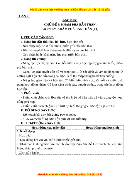 Đây là bản xem th , vu ử i lòng mua tài li u ệ đ xe ể m chi ti t (c ế ó l i ờ gi i ả ) TUẦN 21 ĐẠO Đ C Ứ CH Đ