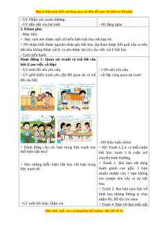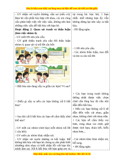 ộ 2: Quan sát tranh và th o ả lu n ậ - HS l ng nghe. ắ (làm vi c ệ nhóm 4). - GV m i ờ HS nêu yêu c u. ầ - GV gi i ớ thi u ệ tranh yêu c u ầ HS th o ả lu n ậ nhóm 4, quan sát và tr l ả i ờ câu h i ỏ : - 1 HS nêu yêu c u. ầ - Các nhóm th o ả lu n, ậ trao đ i ổ và tìm ra câu tr l ả i ờ : + Bất hòa nào đang x y r ả a gi a các ữ b n? ạ Vì sao? + Các b n ạ trong tranh không thống nh t ấ đư c ợ vi c ệ ch n ọ + Đi u ề gì x y ả ra n u ế các b n ạ không xử lí b t ấ ch i ơ c u ầ lông hay đá c u ầ nên hòa? dẫn đ n b ế ất hòa. + N u ế các b n ạ không xử lí sẽ dẫn đ n ế vi c ệ cãi nhau, gi n ậ + Sau khi x l ử í b t ấ hòa các b n ạ s c ẽ m ả th y nh ấ ư nhau, không ch i ơ v i ớ nhau n a. ữ th nào? ế + Các b n ạ sẽ c m ả th y ấ vui h n, ơ cùng nhau vui ch i ơ , giữ - GV m i
