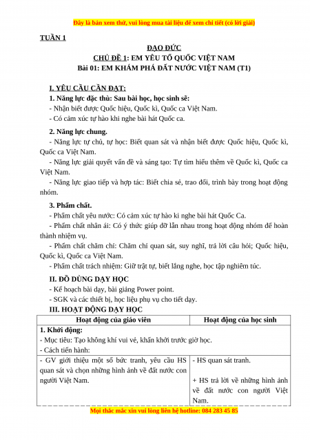 TUẦN 1 ĐẠO ĐỨC