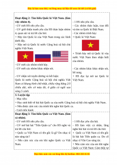 + Củng cố kiến thức về Quốc hiệu, Quốc kì và Quốc ca Việt Nam.