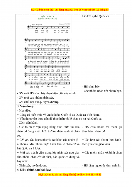 - Phẩm chất yêu nước: Có cảm xúc tự hào ki nghe bài hát Quốc Ca.
