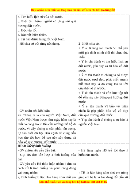 Đây là bản xem th , vu ử i lòng mua tài li u ệ đ xe ể m chi ti t (c ế ó l i ờ gi i ả ) b. Tìm hi u l ể ch ị s c ử a ủ đ t ấ nư c. ớ c. Bi t ế n ơ nh ng ữ ngư i ờ có công v i ớ quê hư ng đ ơ ất nư c. ớ d. H c t ọ p ậ tốt. e. B o ả v t ệ hiên nhiên. g. T hào đ ự ư c ợ là ngư i ờ Vi t ệ Nam. - HS chia s v ẻ i ớ t ng n ừ i ộ dung. 2- 3 HS chia s . ẻ