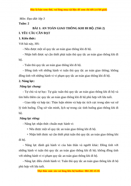 - Tự chủ và tự học: Tự giác tuân thủ quy tắc an toàn giao thông khi đi bộ và
