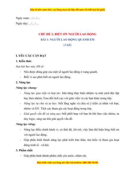 BÀI 1: NGƯỜI LAO ĐỘNG QUANH EM (2 tiết)