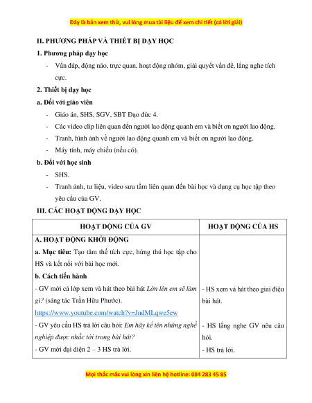 II. PHƯƠNG PHÁP VÀ THIẾT BỊ DẠY HỌC