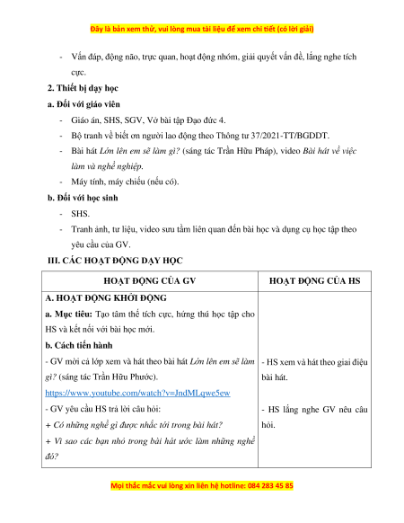 III. CÁC HOẠT ĐỘNG DẠY HỌC