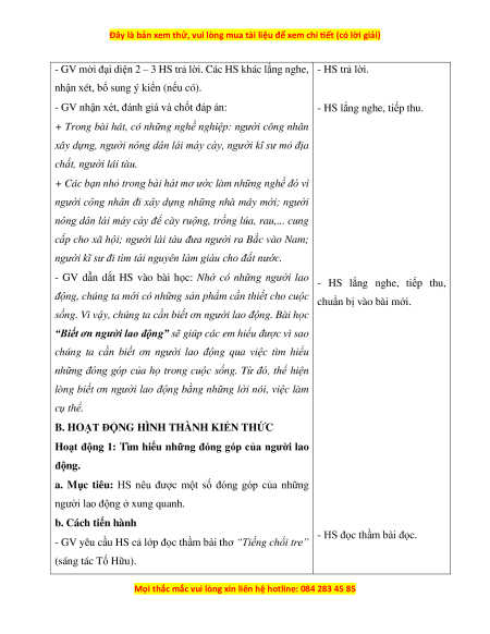 BÀI 1: BIẾT ƠN NGƯỜI LAO ĐỘNG (4 tiết)
