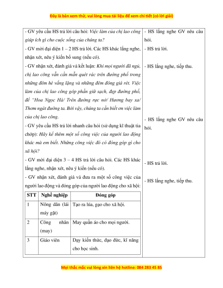 - Nêu được đóng góp của một số người lao động ở xung quanh.